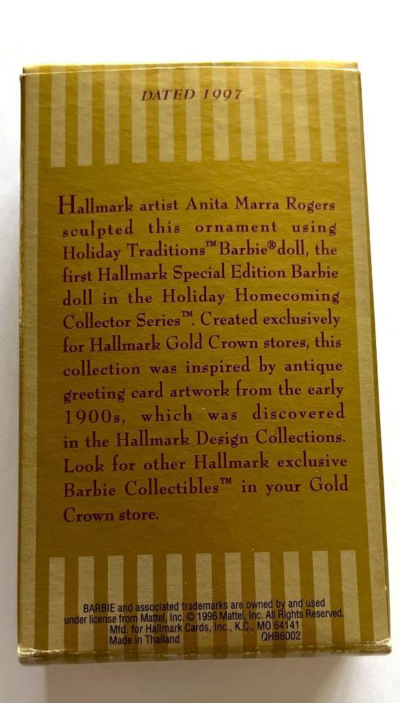 Vintage 1996 Hallmark Barbie Ornament Mattel Holiday Traditions Barbie w COA