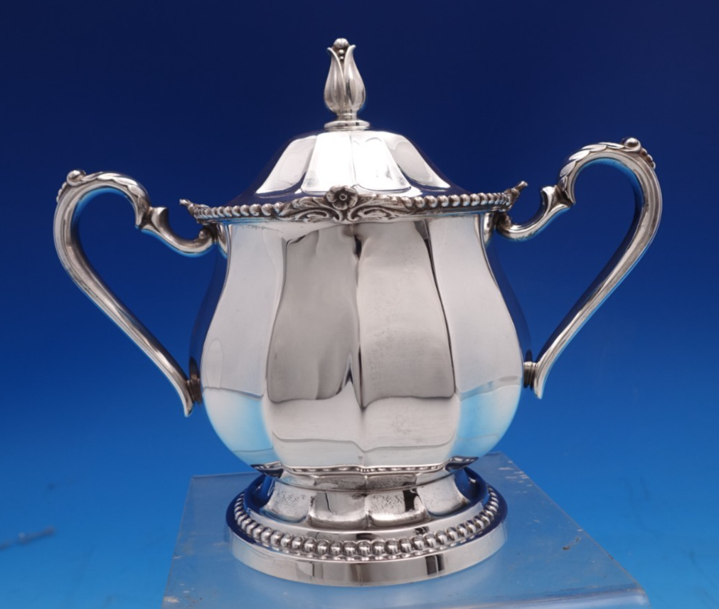1 - Sugar Bowl with Lid: Marked #149.3, measures 5 1/2" x 7 1/2", and weighs 11.7 troy ounces.