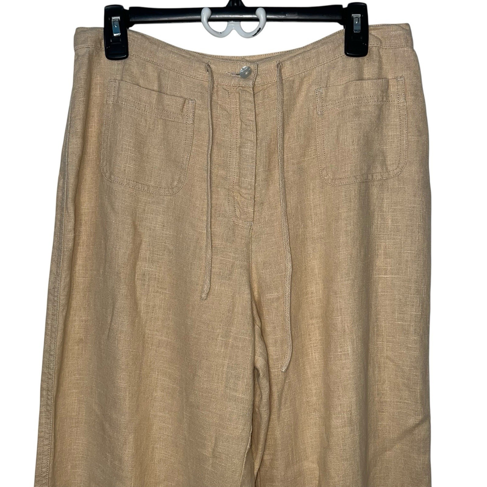 Vintage Susan Bristol 100% Ramie Fabric Tan Straight Leg Drawstring Pants Sz 10