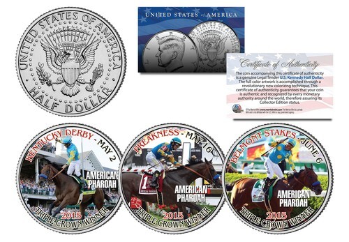 AMERICAN PHAROAH 2015 Triple Crown Winner JFK Half Dollar 3-Coin Set -TEST ISSUE
