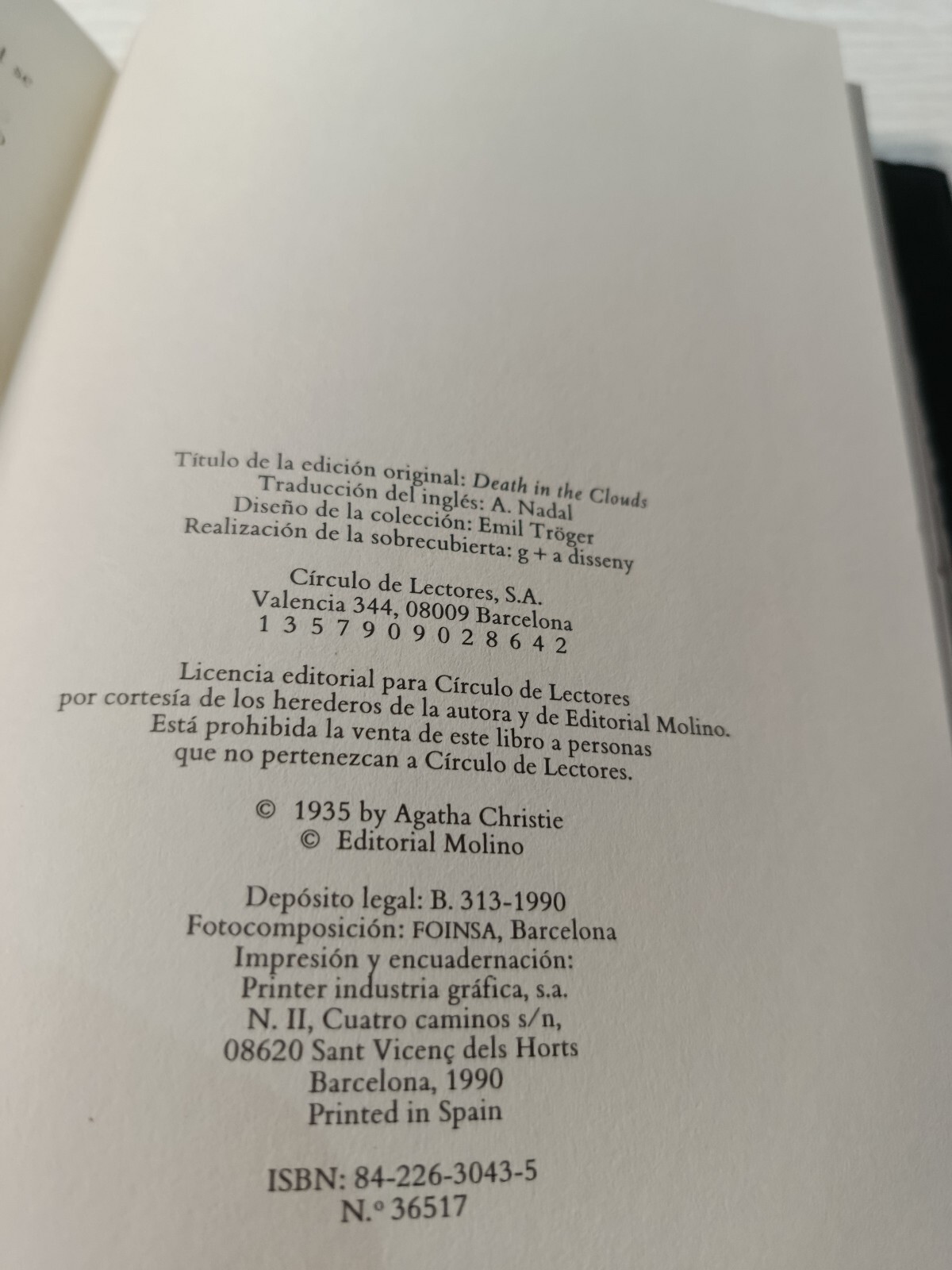 Death in the clouds Agatha Christie (Circle de Readers 1990) Spanish Book Am