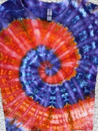 NEW Gilden Men?s Purple Orange Red Spiral Tie Dye Short Sleeve Shirt Size Large