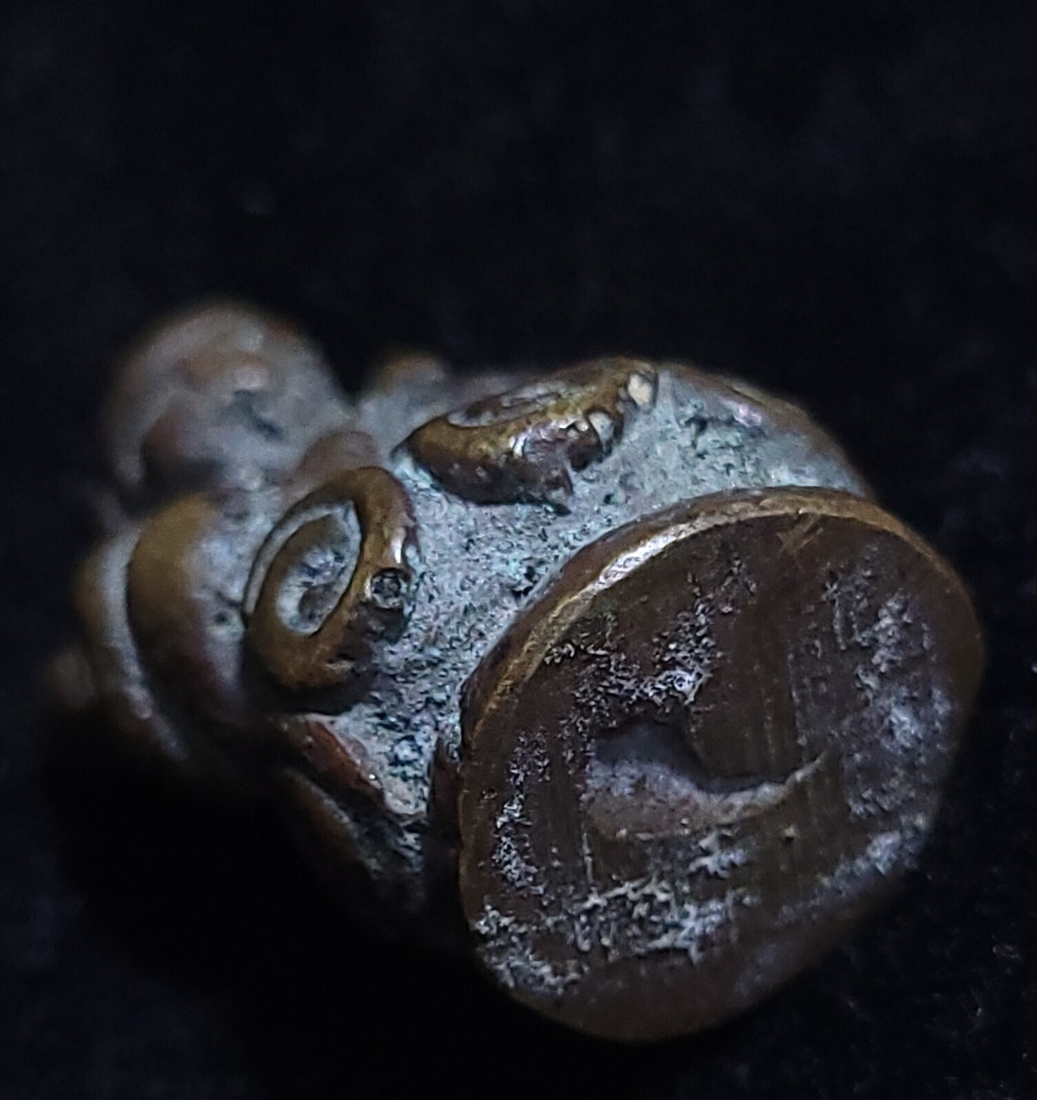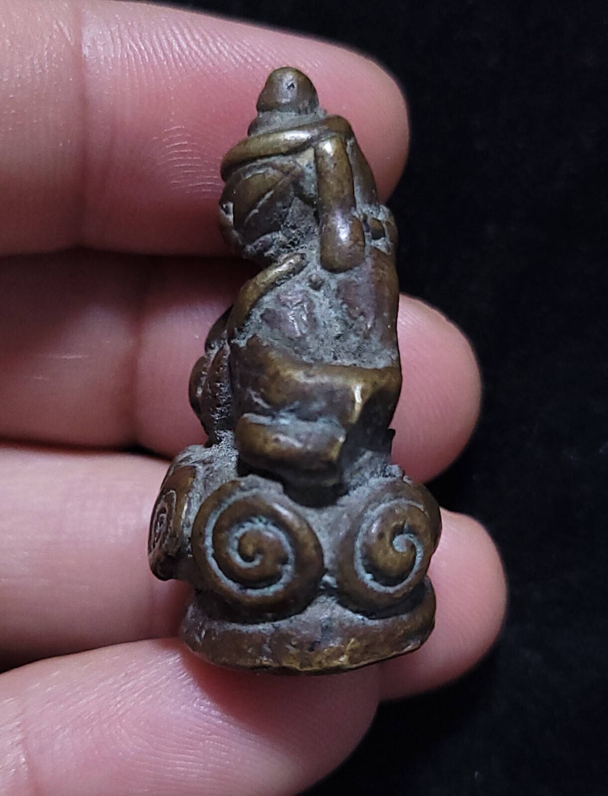 Thai amulet Buddha phra pidta brass 4 cm. talisman, old, authentic, rare, luck.