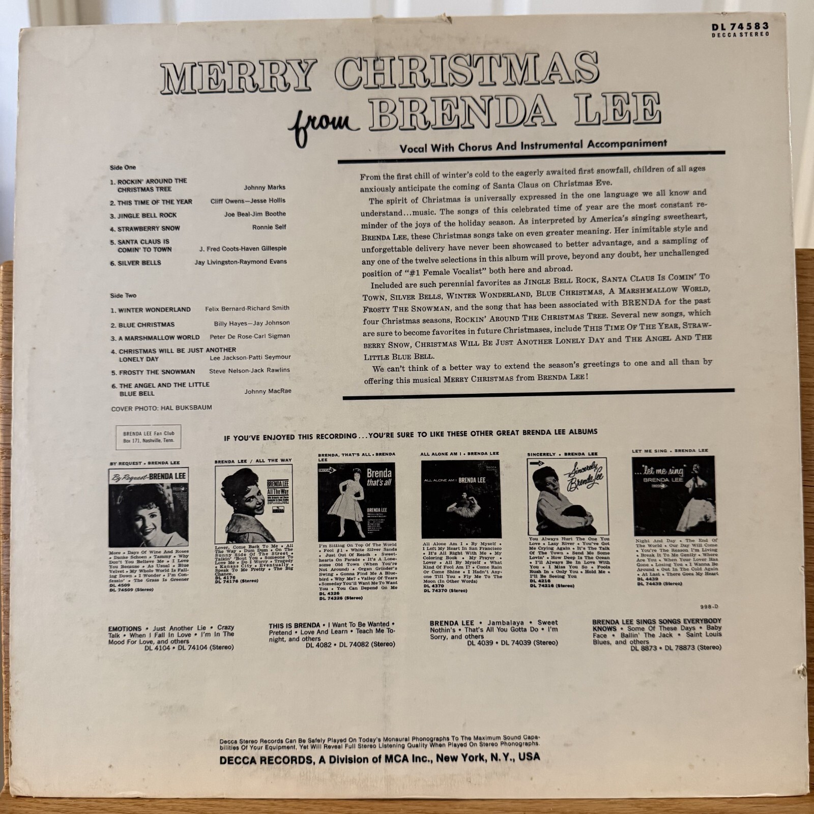 Brenda Lee Merry Christmas From Brenda Lee Vinyl LP Decca DL 74583 1st Press