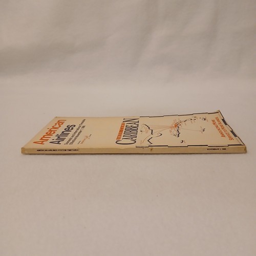 This listing is for a single American Airlines Timetable booklet. This timetable was effective on November 1, 1986. It features passenger flight schedules, passenger information, and flight itineraries. The cover is clean with minor wear. The booklet is complete. There are 208 pages. There are no missing or torn pages. The pages are clean.
