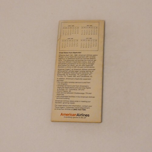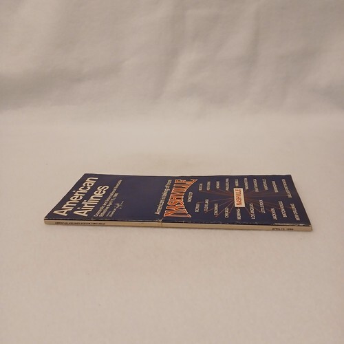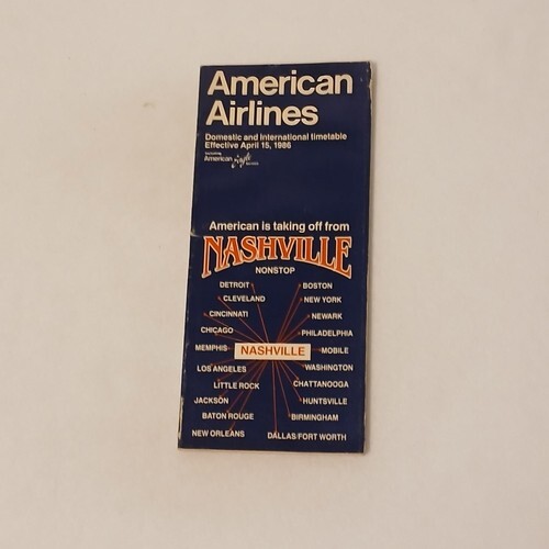 This listing is for a single American Airlines Timetable booklet. This timetable was effective on April 15, 1986. It features passenger flight schedules, passenger information, and flight itineraries. The cover is clean with minor wear. The booklet is complete. There are 168 pages. There are no missing or torn pages. The pages are clean.
