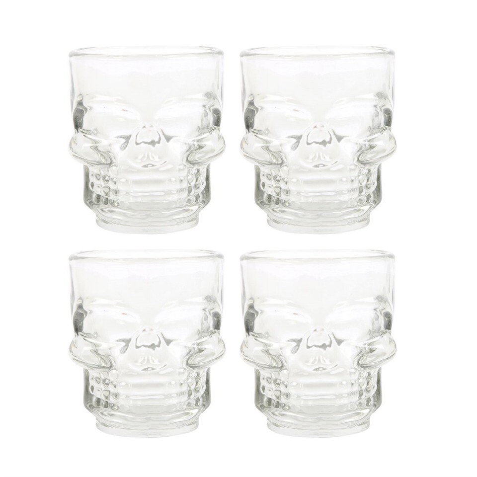 Set of 4 Skull Shot Glasses - Gothic Skeleton Head Tequila Drinking Set