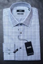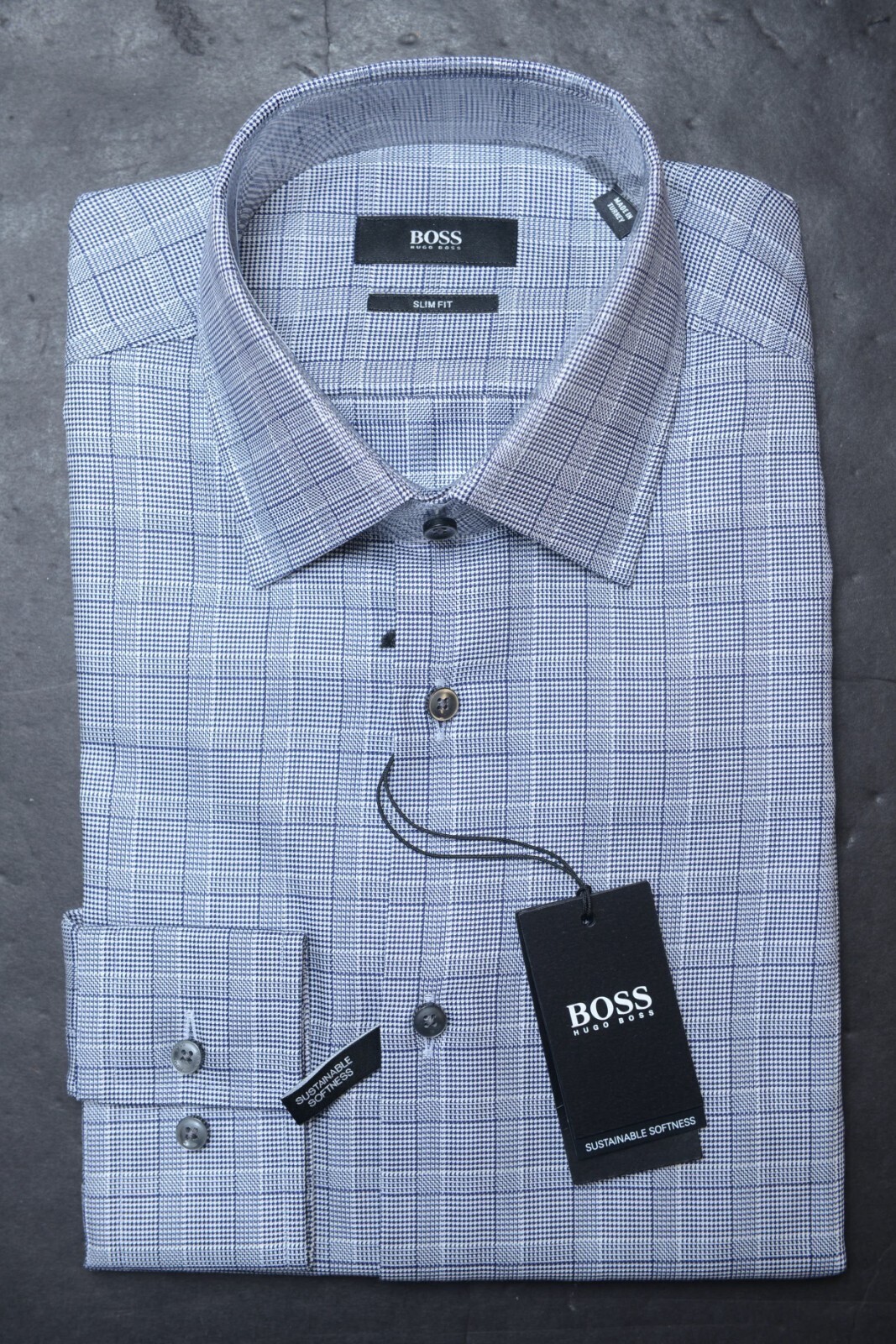 NWT Hugo Boss maschile maschile slim -fit morbidezza sostenibile controlli in cotone camicia