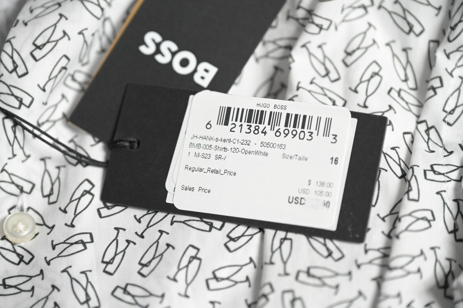 Hugo Boss Herren Hank Kent Slim Fit Blattdruck Stretch Baumwollhemd 39 15.5