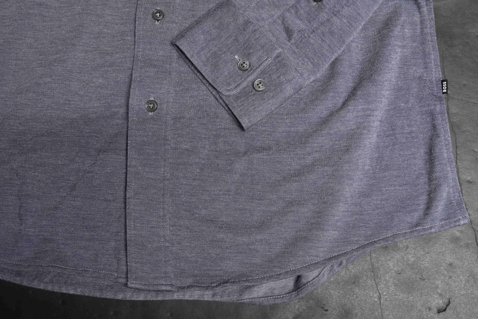 HUGO BOSS Hommes Nik Coupe Décontracté Bleu Coton / Lyocell Affaires Chemise L added to cart.