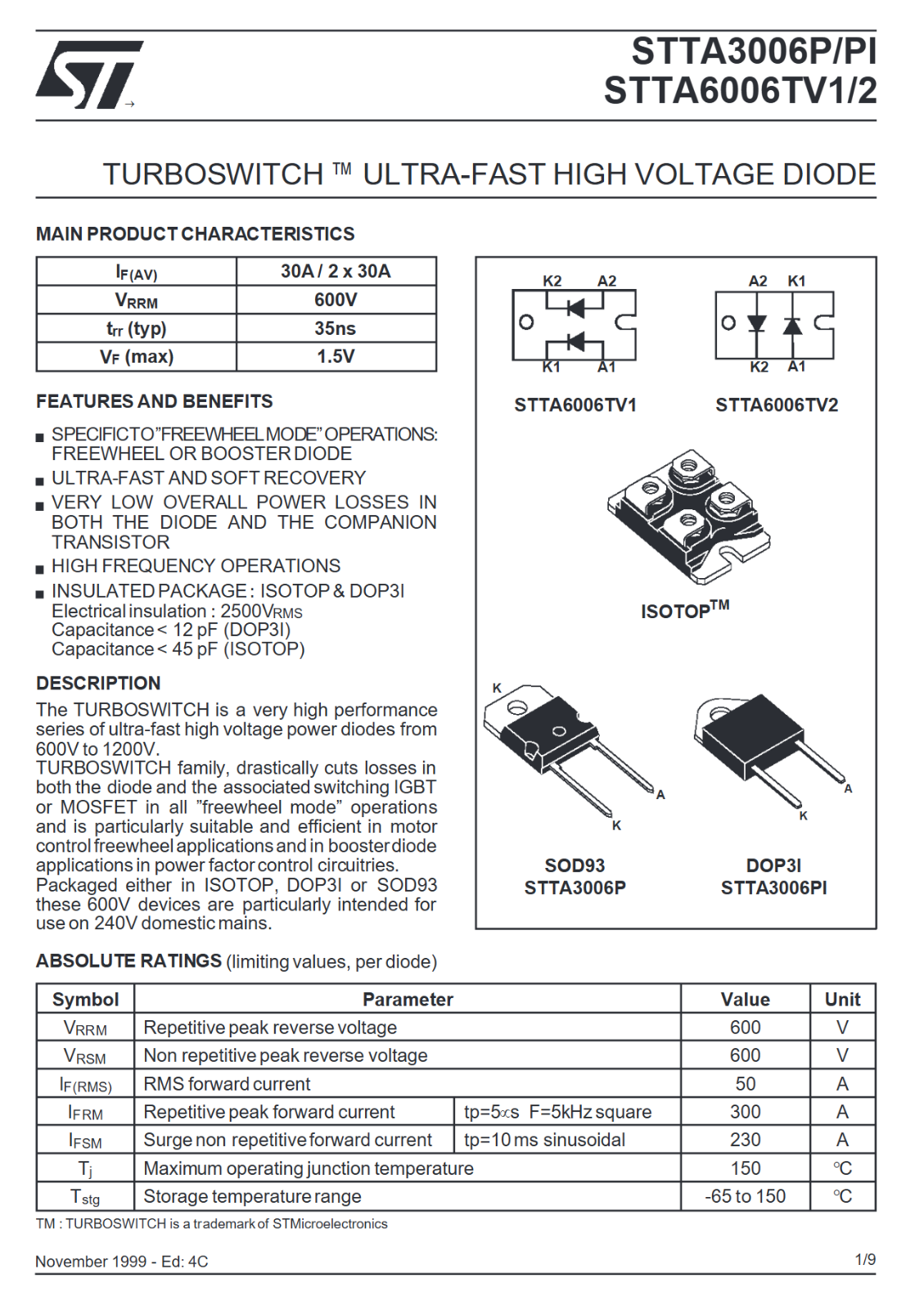 1X STTA3006PI STM Ultrafast High Voltage and 50 similar items