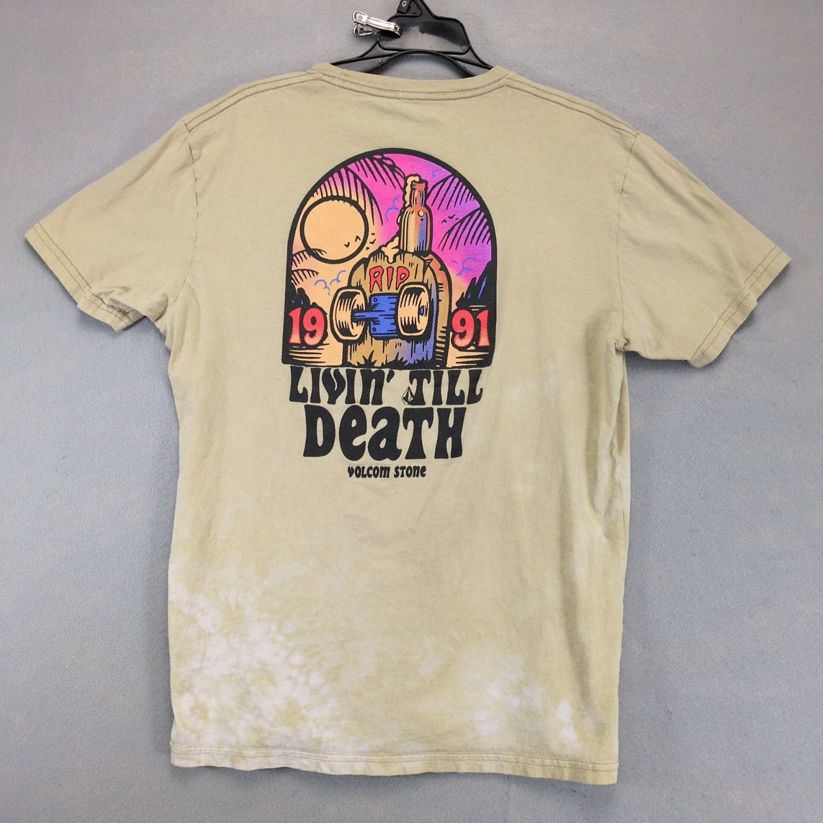 Volcom Skater Graphic T-Shirt Men's L Livin' Till Death Beige Streetwear Grunge added to cart.