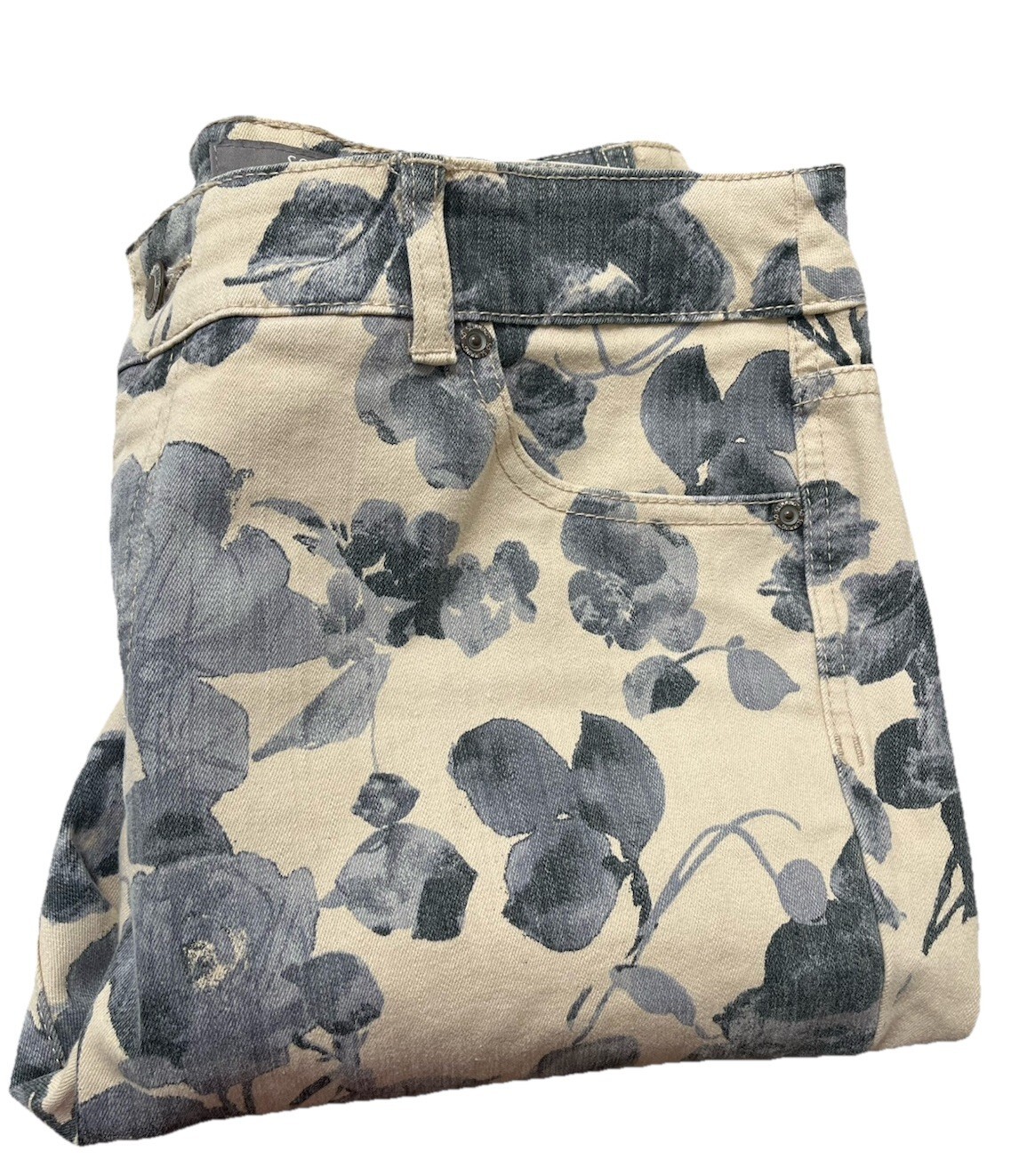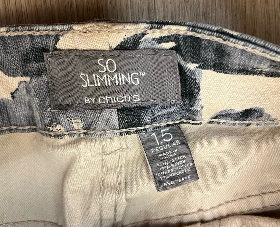 Chicos So Slimming Floral Print Straight Leg Mid Rise Tan Gray Jeans Size 1.5 R