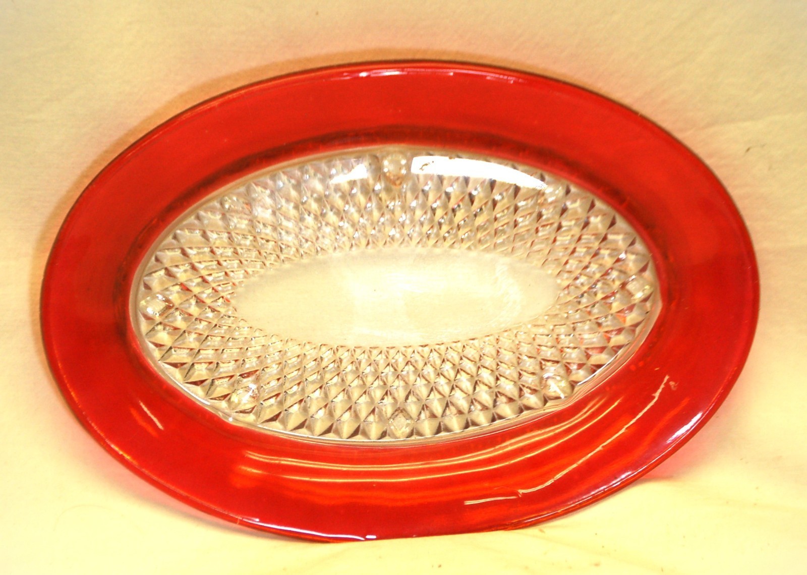 Diamond Point Cranberry Creamer Sugar Tray and 39 similar items
