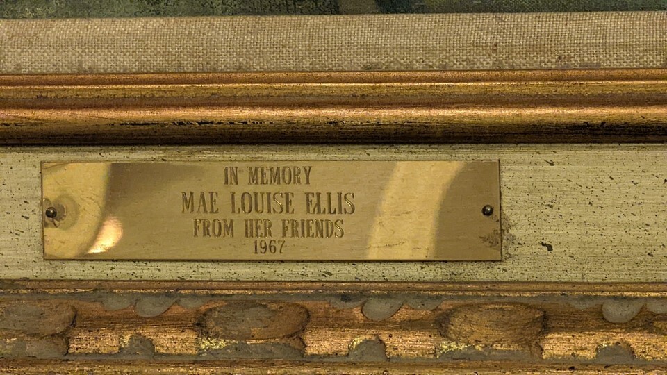 The frame has nicks and bumps here and there but nothing that detracts overall. I can go lower if this ships without the frame. There is also a dedication plaque at the bottom dated 1967 which you can remover/replace. Someone bought their friend this painting. What a nice gift.