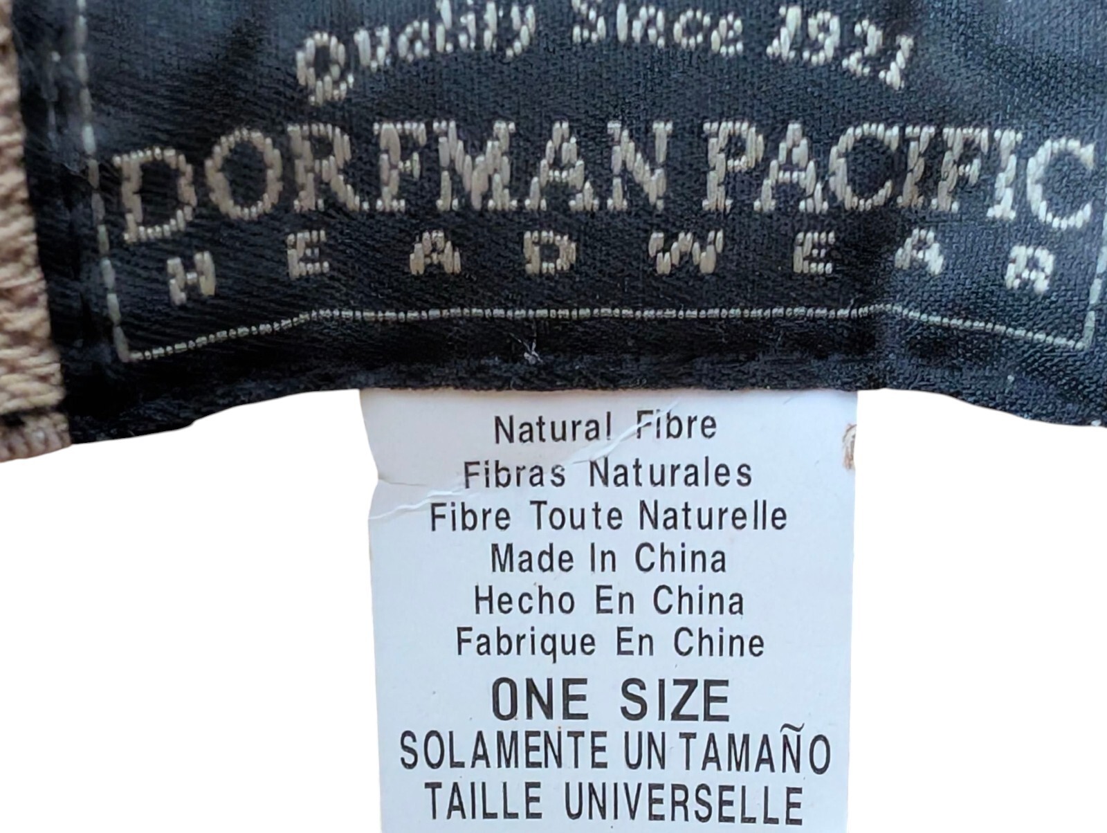 This is a beautiful woman's dorfman Pacific headwear natural fiber sun hat. One size. The interior has a soft band around the edge for added comfort. Super cute style!