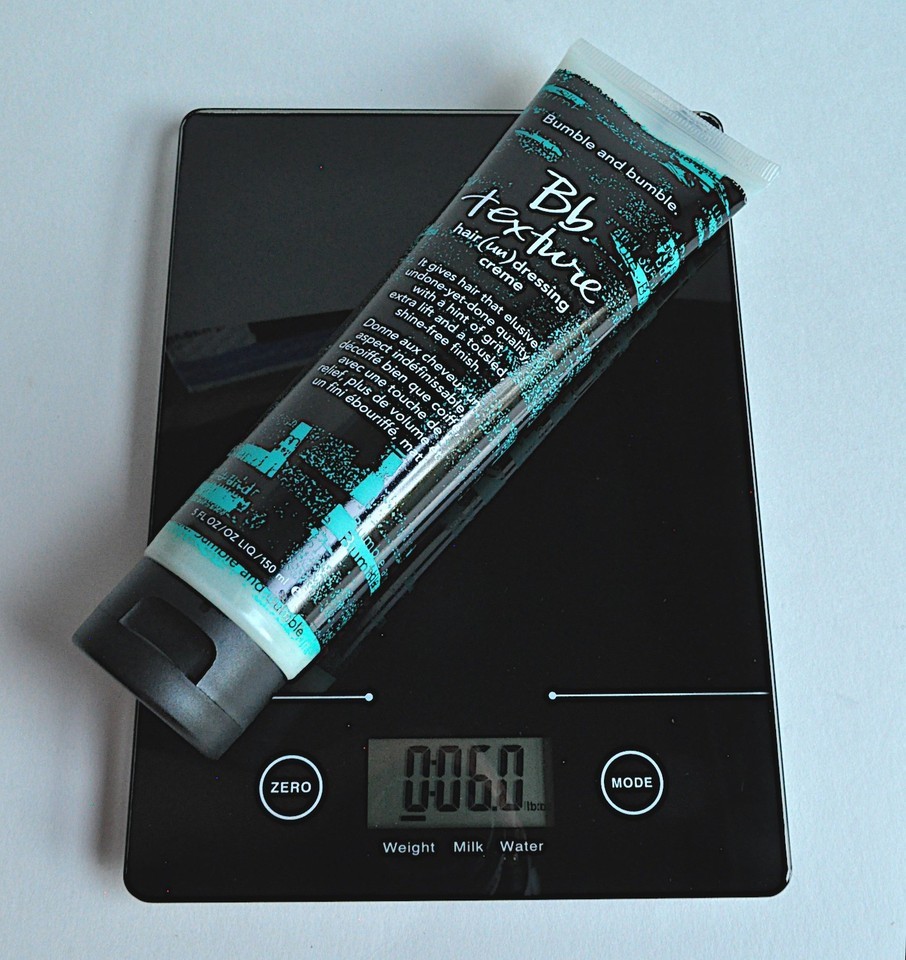 One 5 ounce tube of Bumble and bumble Bb. texture hair (un)dressing creme. I have shown it on a scale for comparison to your own empty tube.