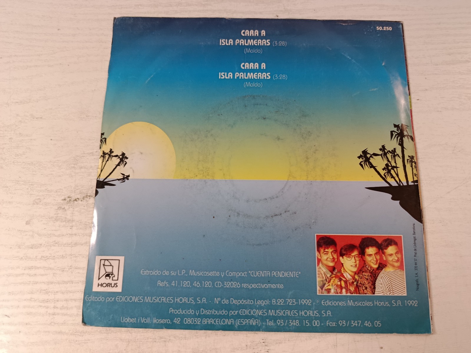isla palm trees, pending counts, vinyl horus 1992, Spanish pop 90s, romantic ballad, unique rare Spain, vinyl 7 inches, musical collecting, Spanish melodic music,vinyl Vintage, Romantic Latin Pop, Horus Seal, Difficult Discs, Rare Spanish Records