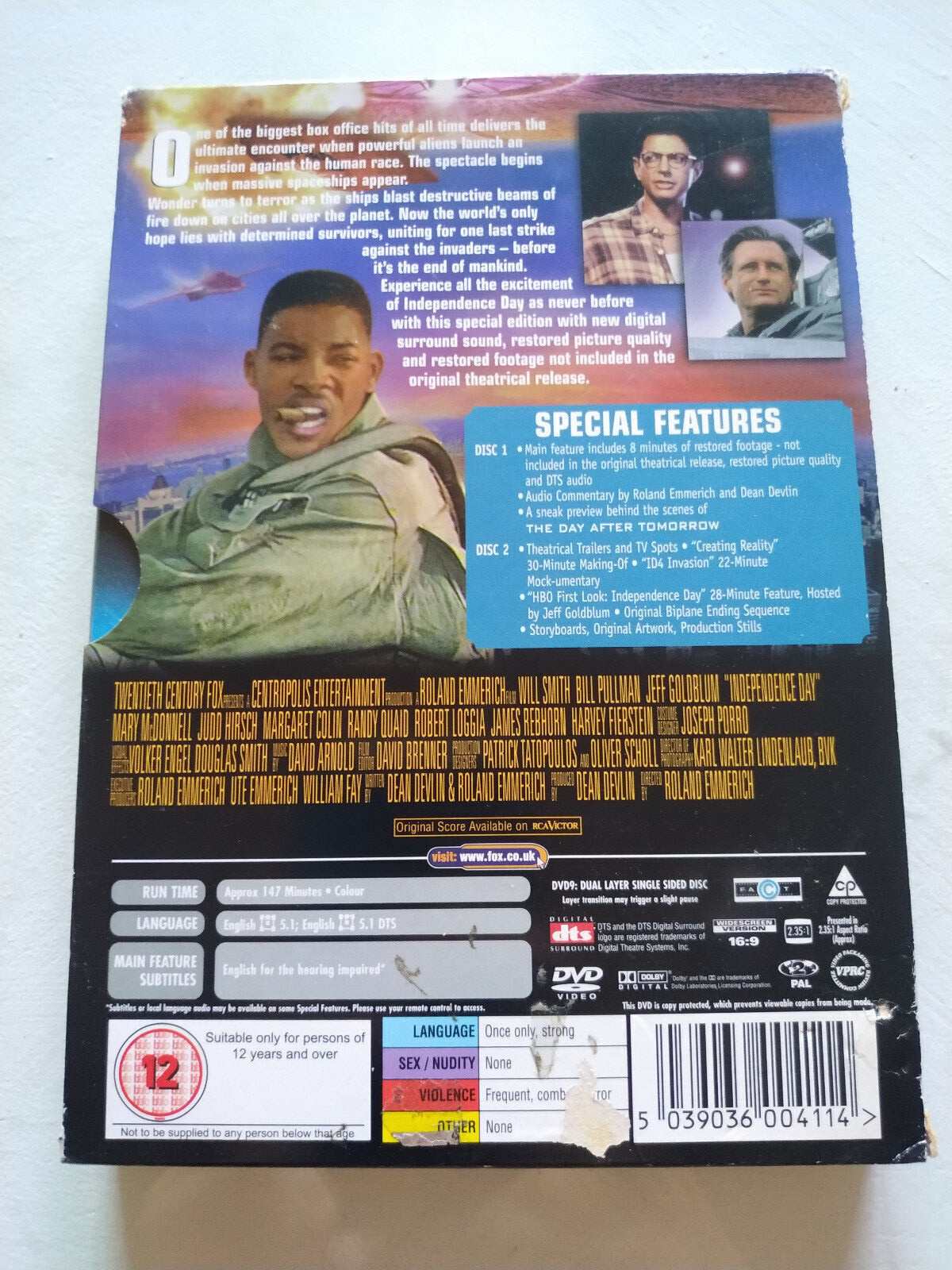 Independence Day Will Smith Goldblum - 2 x DVD + Extras English Region 2 am