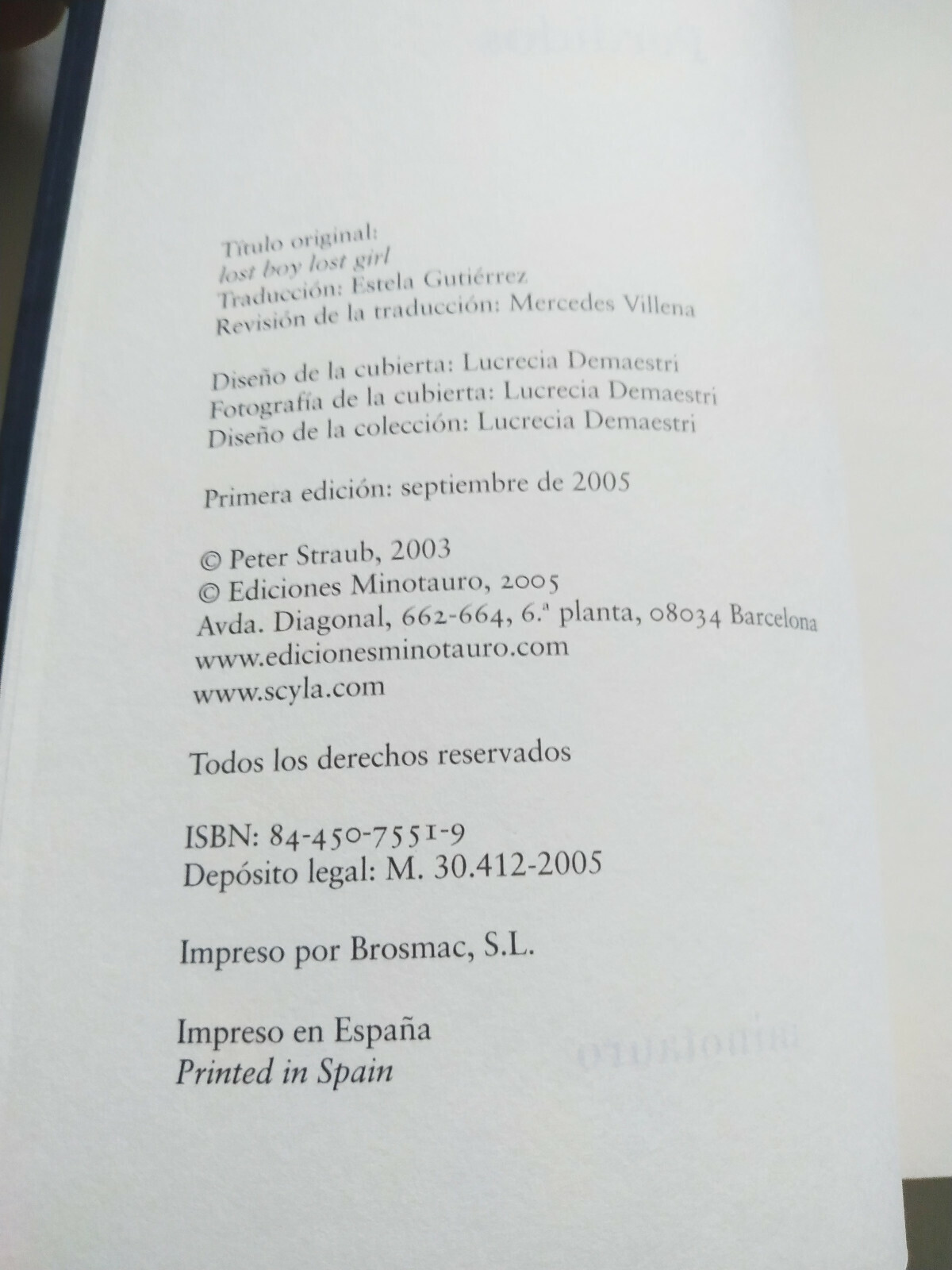 Perdidos Peter Straub Minotaur Terror 2005 - Libro spagnolo AM