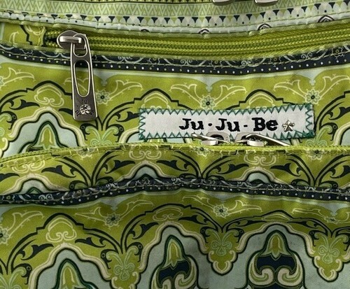 Ju Ju Be Back Pack Diaper Bag Organizer Green and Blue Paisley Many Pockets