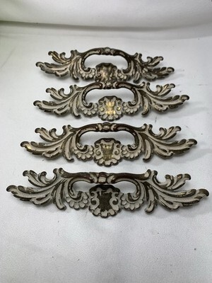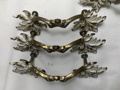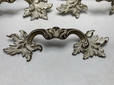 11 Vintage French Provincial Drawer Pulls 3" centers + 4 Brass & White Coloring
