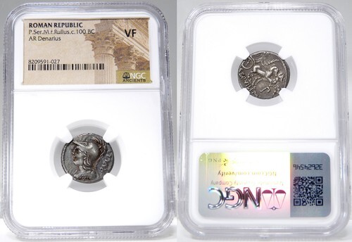 MINERVA/Victory two Horse Chariot. P. Servilius M.f Rullus NGC Certified VF Coin