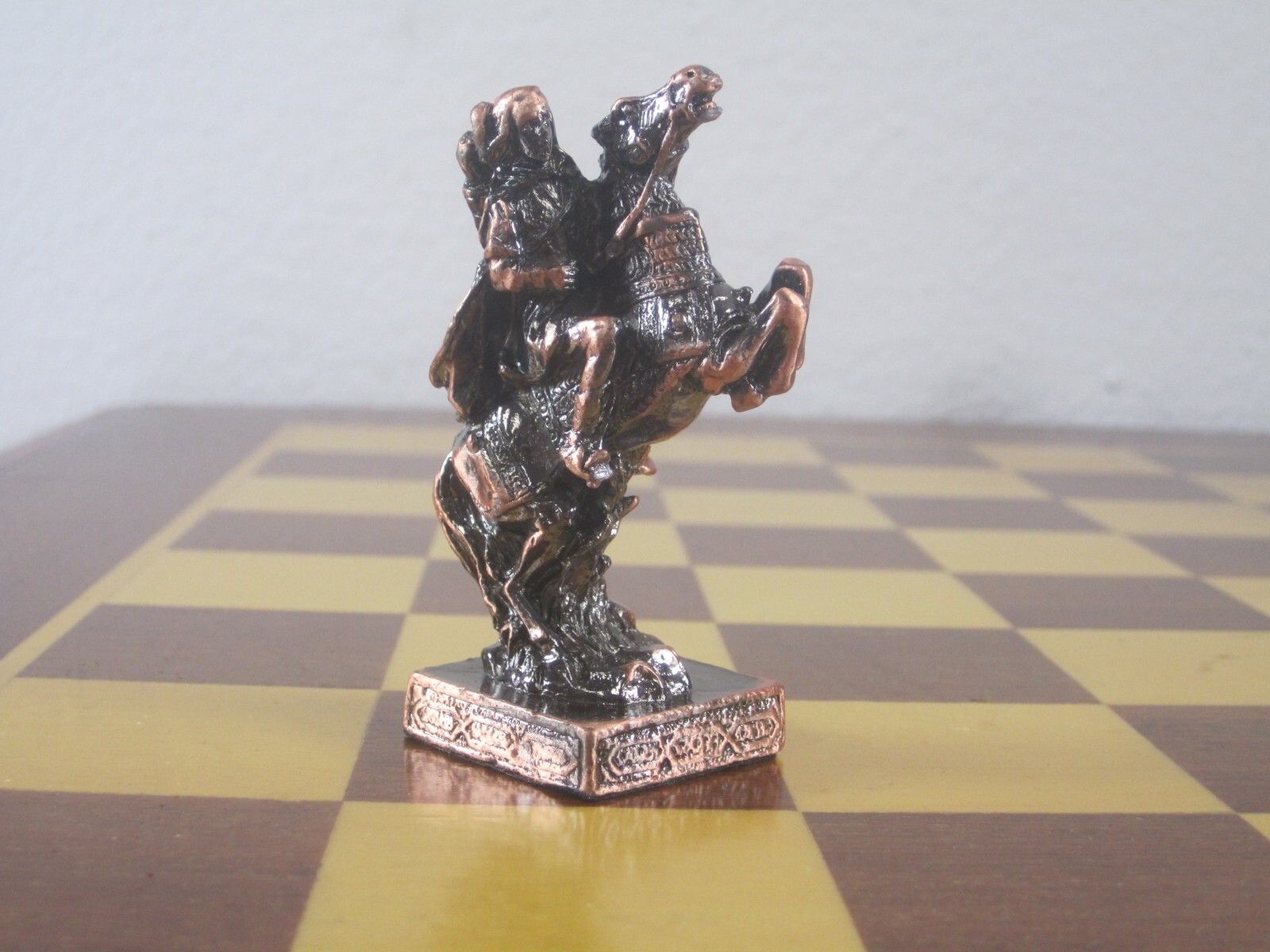 The Ancient Chinese Chess Set includes 32 intricately hand-pewter pieces, each featuring intricate details specific to Chinese design.