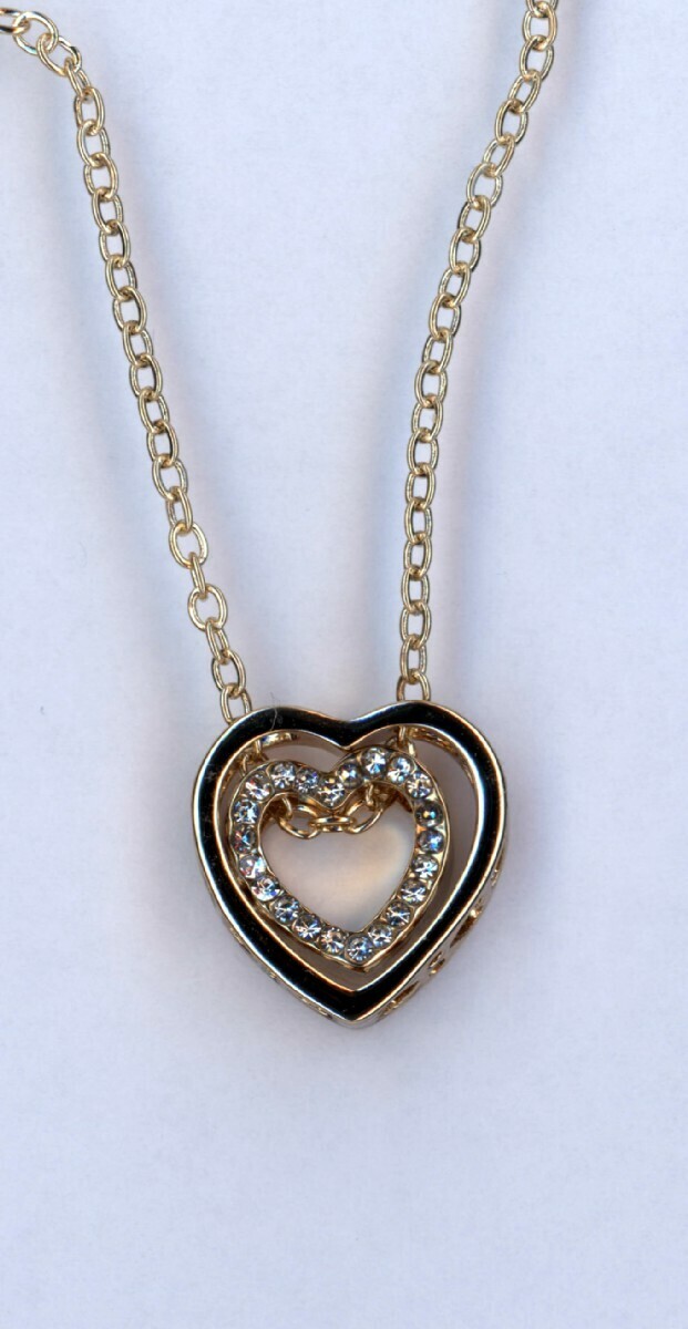 Collana di tono dorato per tutti, molte pietre preziose circondano il cuore.