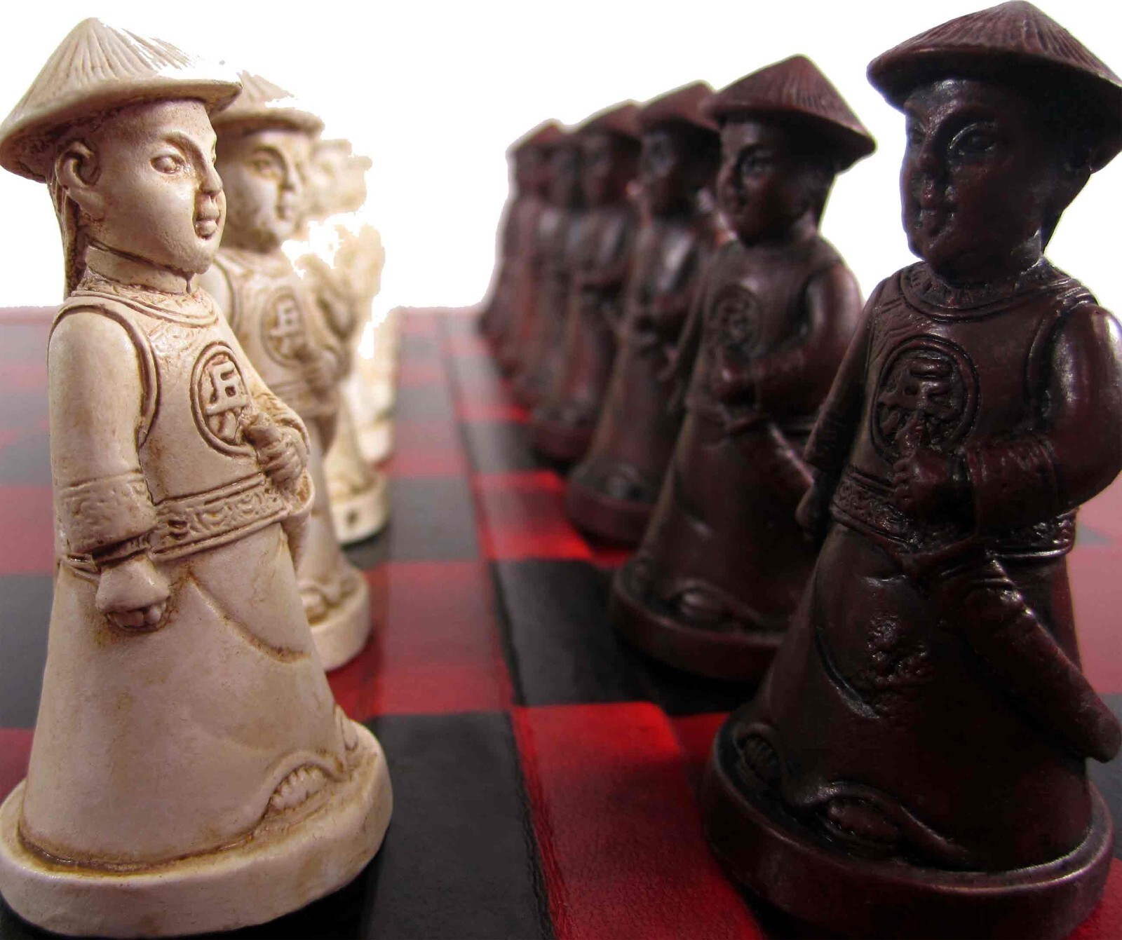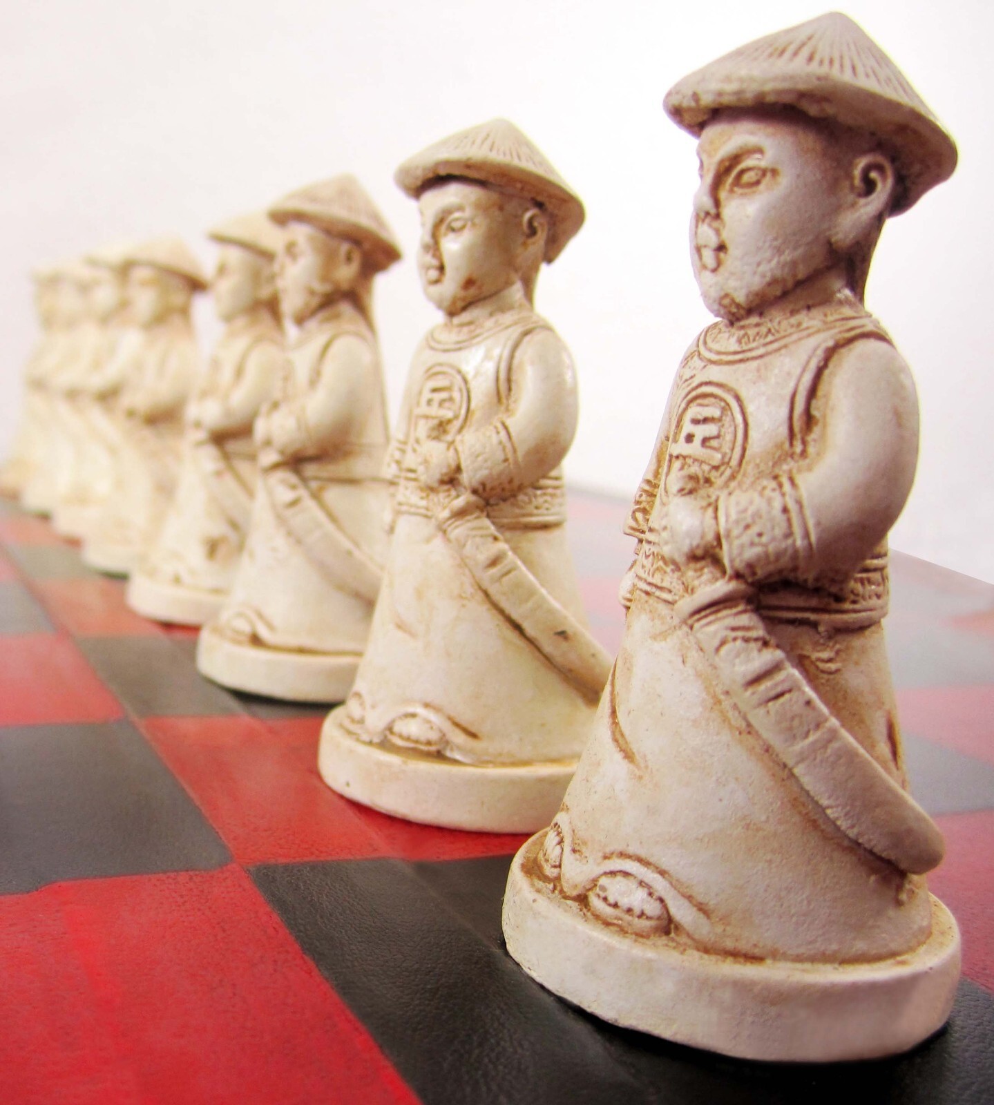 Chess set Ancient chinese 32 resin pieces with nice box and board small Red