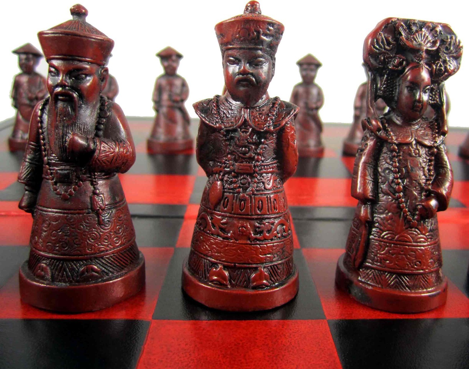 The Ancient Chinese Chess Set includes 32 intricately hand-painted resin pieces, each featuring intricate details specific to Chinese design.