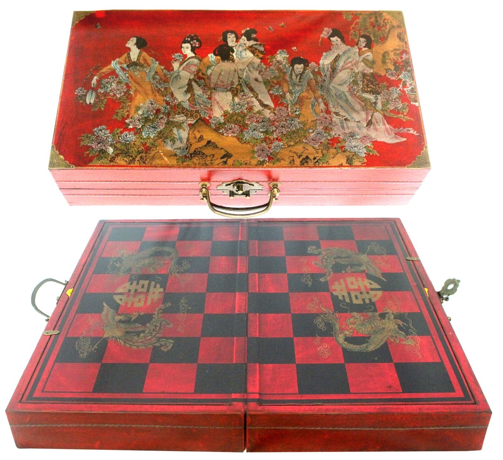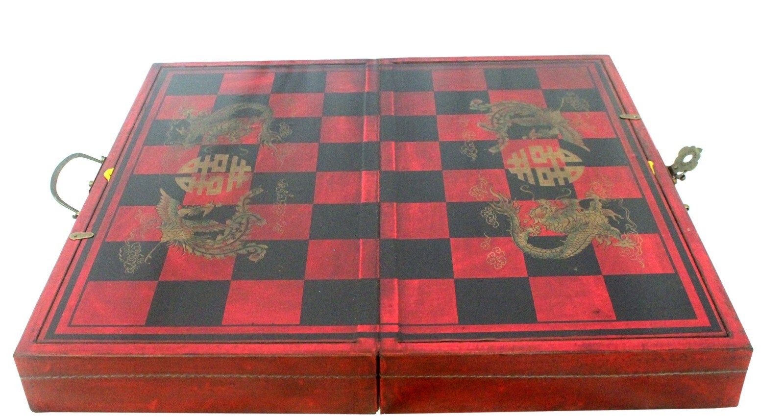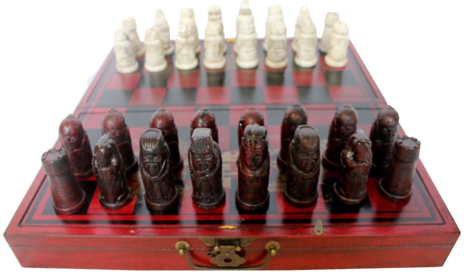 Chess set Ancient chinese 32 resin pieces with nice box and board big Red