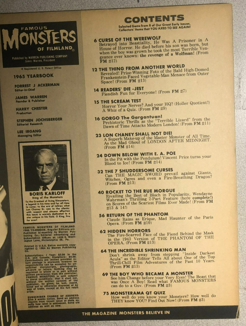 Famous Monsters Of Filmland 1965 Yearbook and 50 similar items