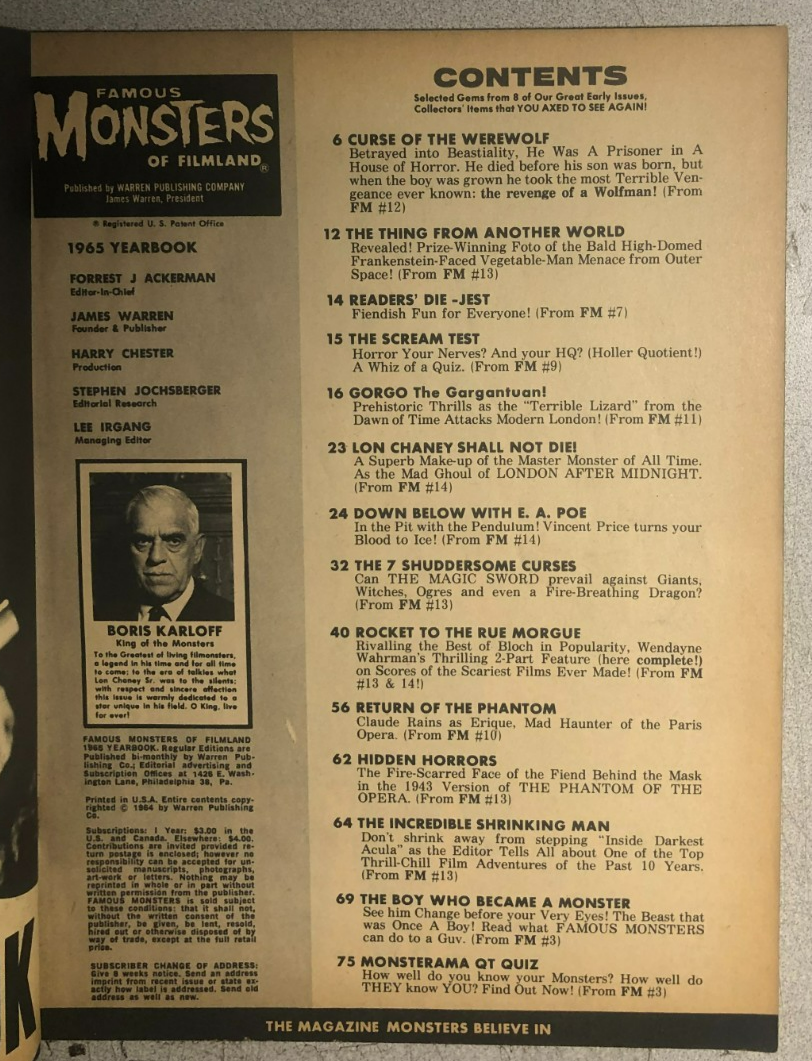 Famous Monsters Of Filmland 1965 Yearbook and 50 similar items