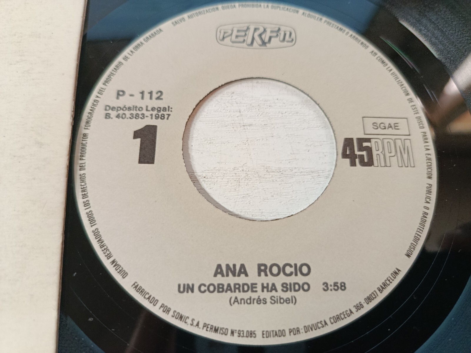 el Disco was manufactured by Sonic, SA in Barbera del Valles and distributed by Divucsa (Barcelona). This single belongs to a stage de the artist in que the traditional Spanish song mergedcon Contemporary melodic influencesdelos 80s. el de design presents Ana Rocรญo in the foreground con an aestheticde Classical and elegant study. el centro del vinyl shows a BLANCO Y NEGRO cookie con clear and sober, typical typographydel Profile seal.