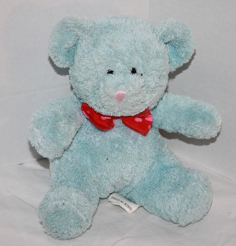 Walmart Valentines Teddy Bear 8" Blue Chenille Plush Heart Bow Stuffed Soft Toy
