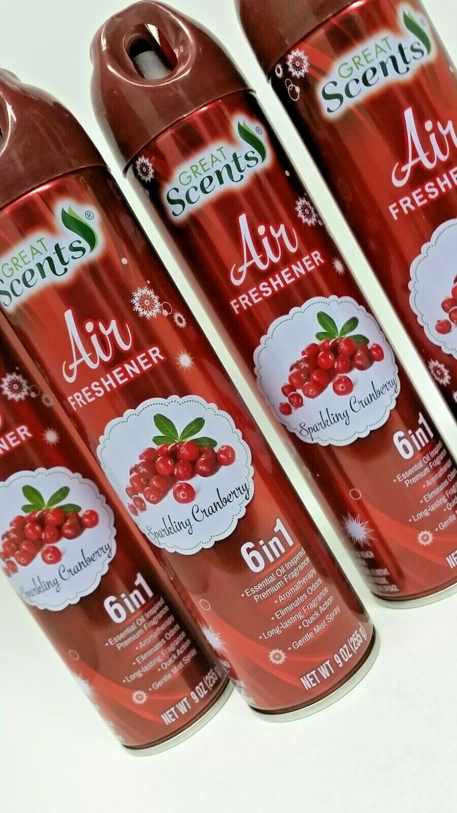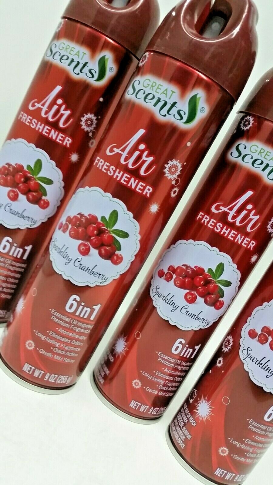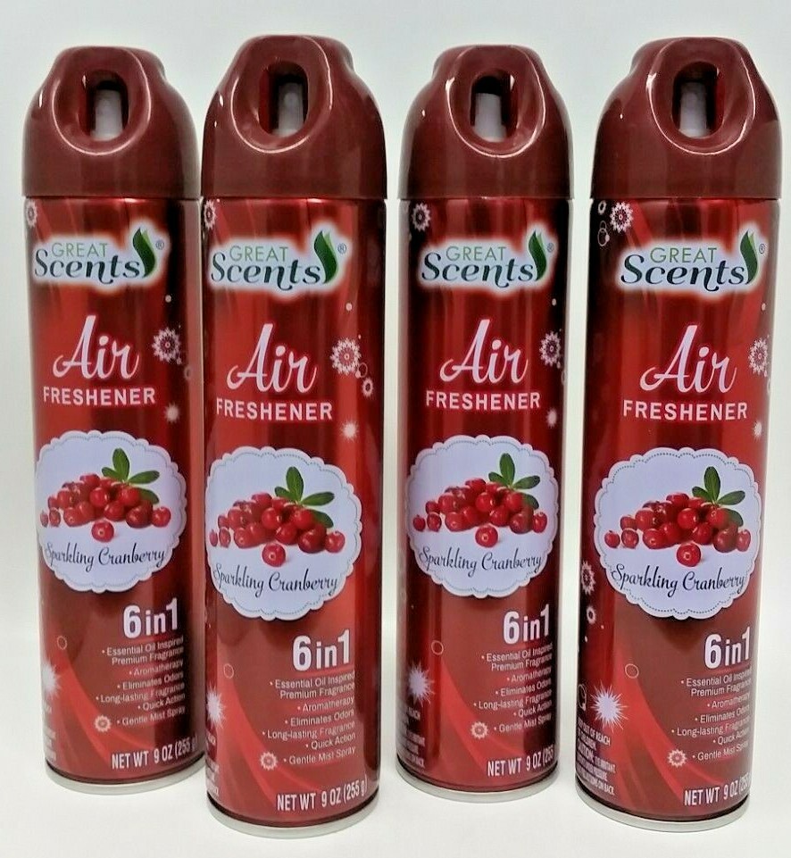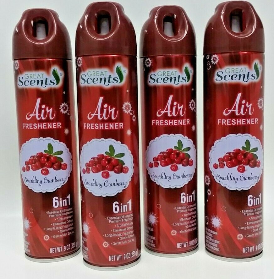 ( LOT 4 ) GREAT SCENTS SPARKLING CRANBERRY Odor Eliminator 6 in 1 Air Freshener Spray 9 oz Each