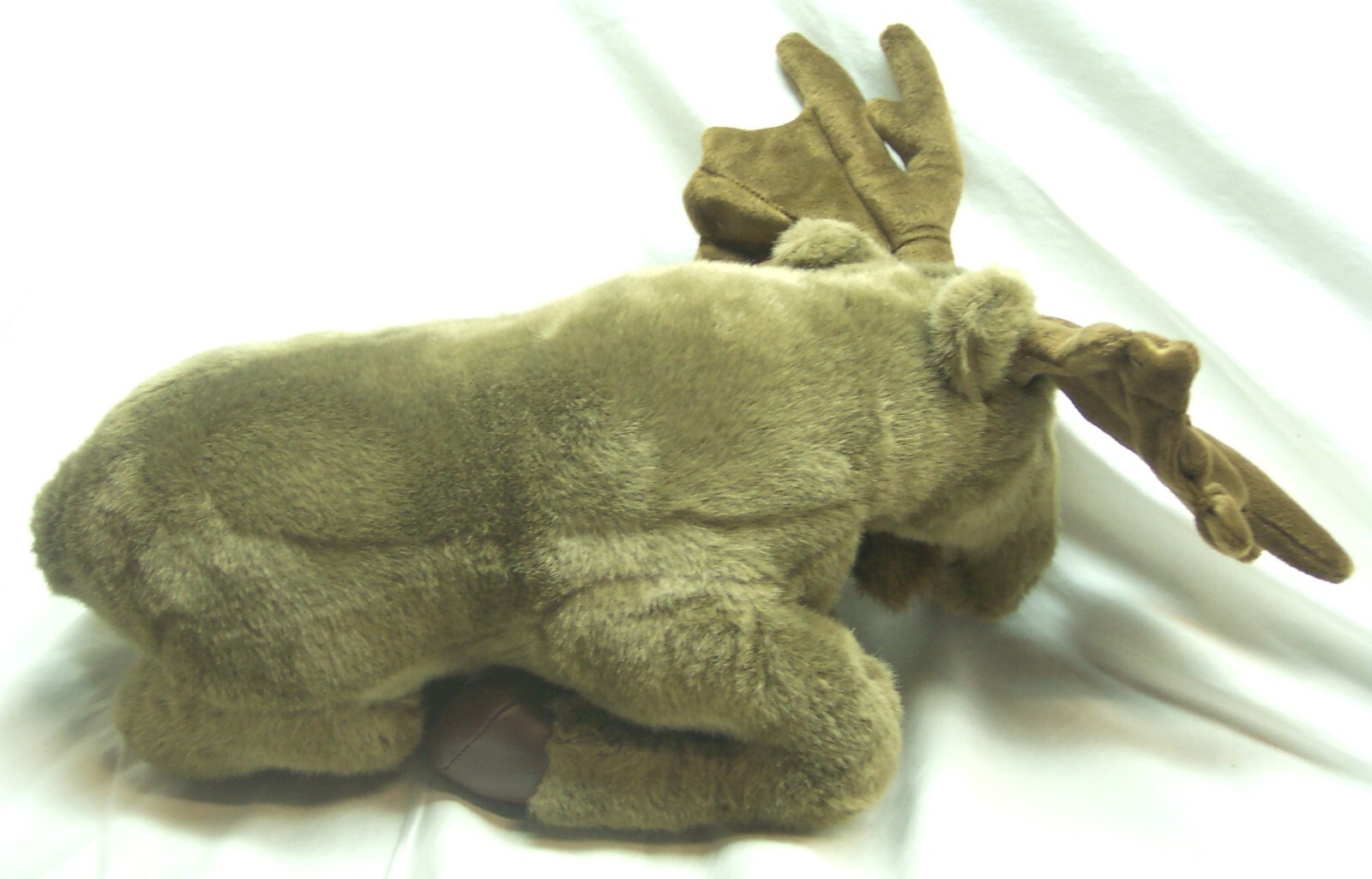 This is a VINTAGE NICE BROWN REALISTIC MOOSE Plush Stuffed Animal. Made by Fiesta in 1998. It is 12 inches tall including the antlers and 16 inches long from front to back. It is in great condition with the tag. It is CLEAN. There are No Stains, Tears or Defects. Combine auctions to save on shipping. Please contact me if you need to make other payment arrangements. EAG