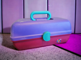 Vintage 1990s Caboodles Makeup Organizer Case Caddy Turquoise Purple Pink 2622