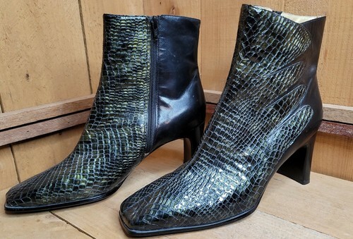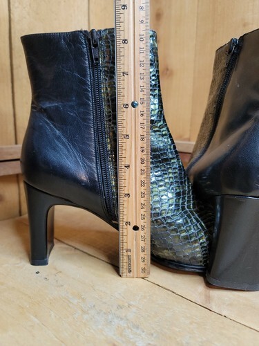 Women's Size 9.5 M Bellini Genuine Reptile Leather Boots 3.25" Heel Green-Black