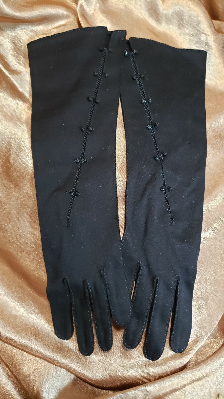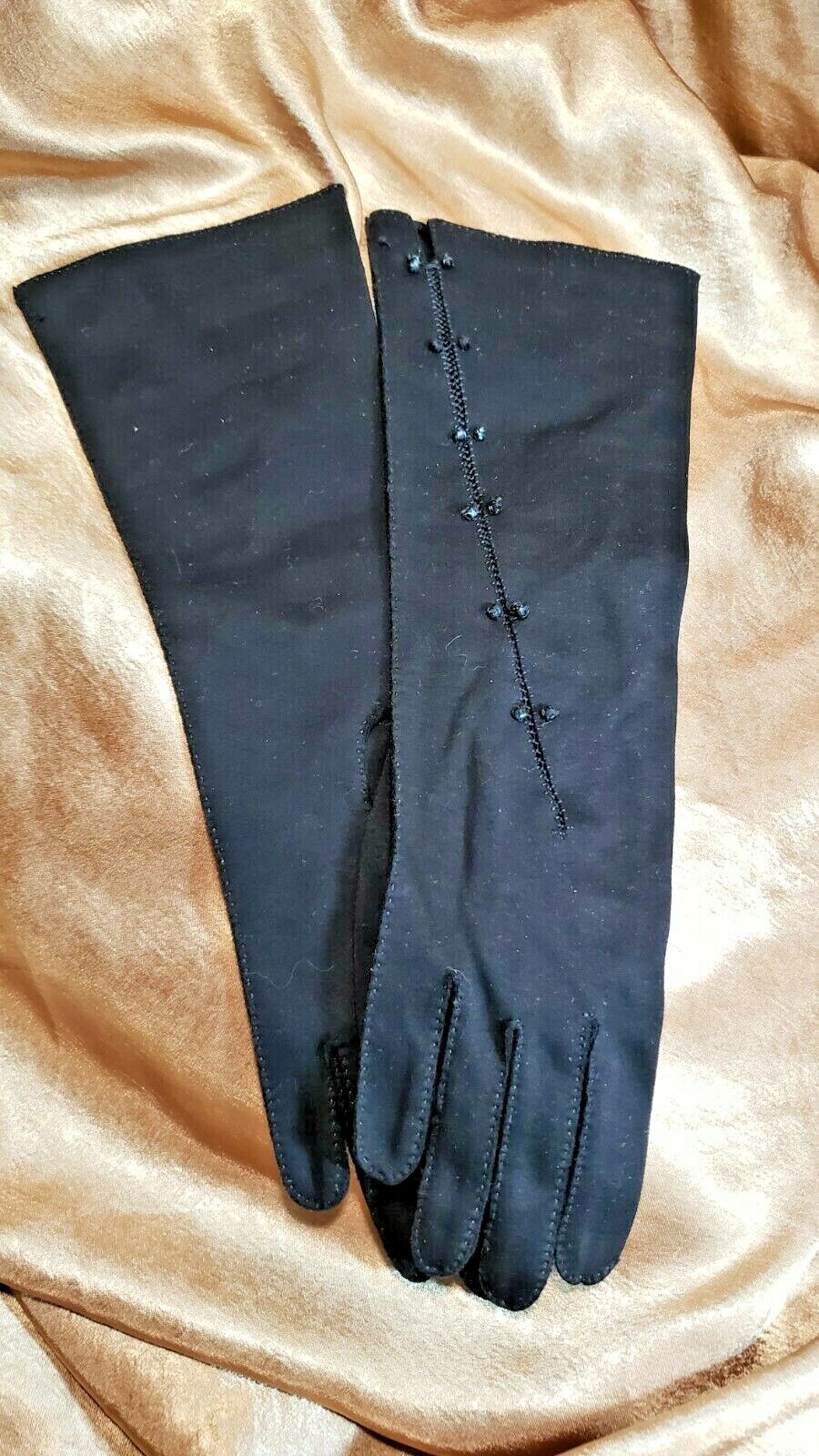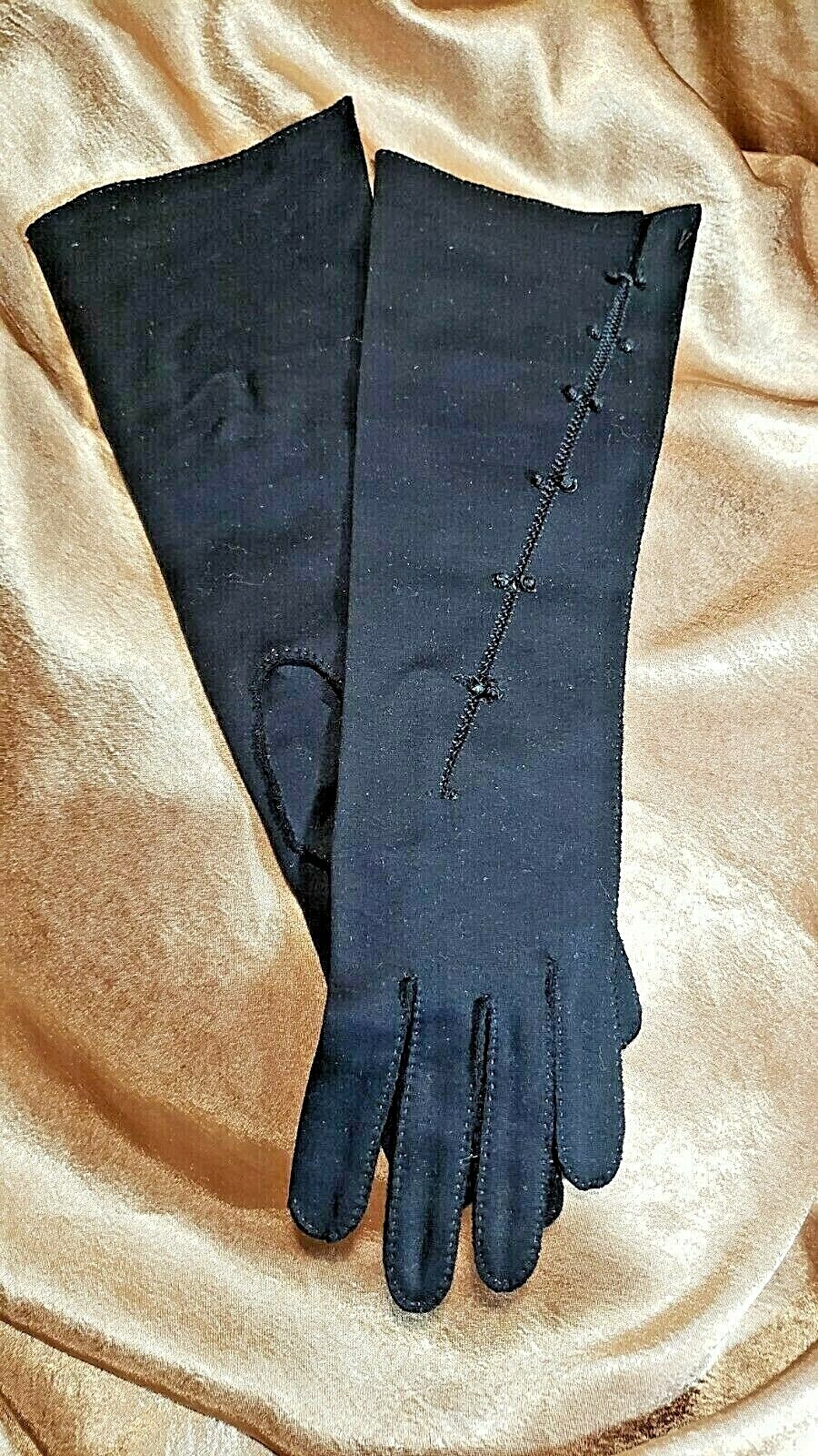 Vintage 1960s Double Woven Cotton by Dawnelle Black Adorned Womens Gloves Sz 6