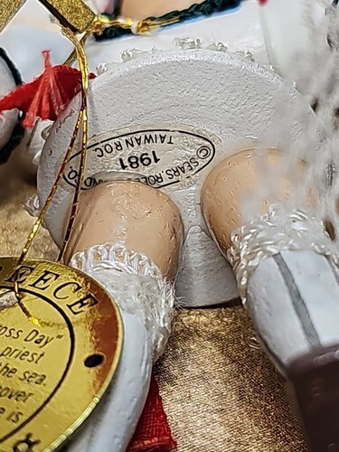 Vintage 80s Sears Roebuck Wooden Ornament Christmas Around The World Greece