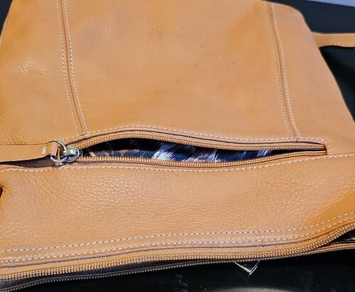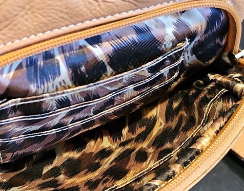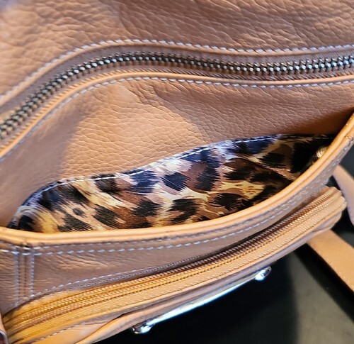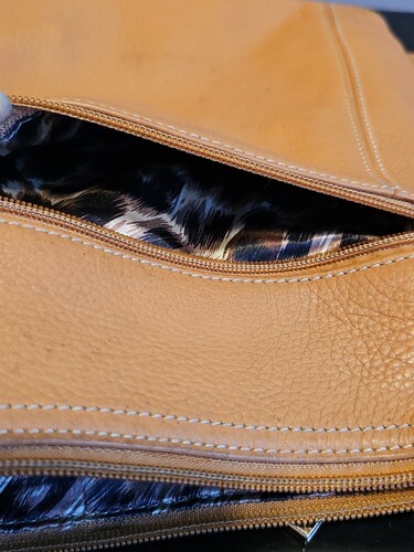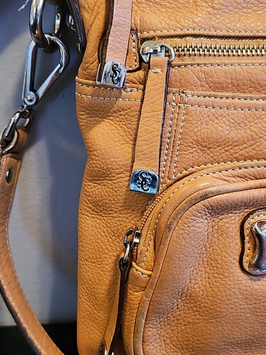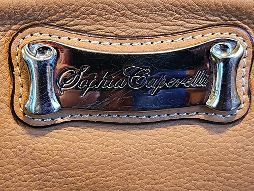 Sophie Caperelli Small Camel Leather Crossbody POCKETS GALORE Bag Purse