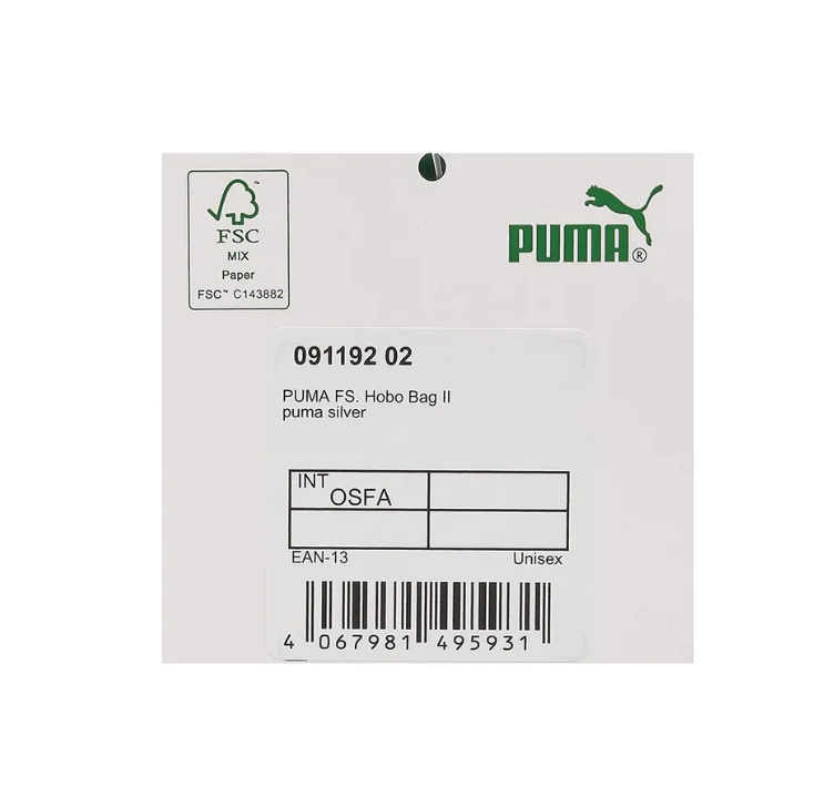 PUMA FS. Hobo Bag Women's Casual Bag Fashion Shoulder Bag Silver NWT 091192-02