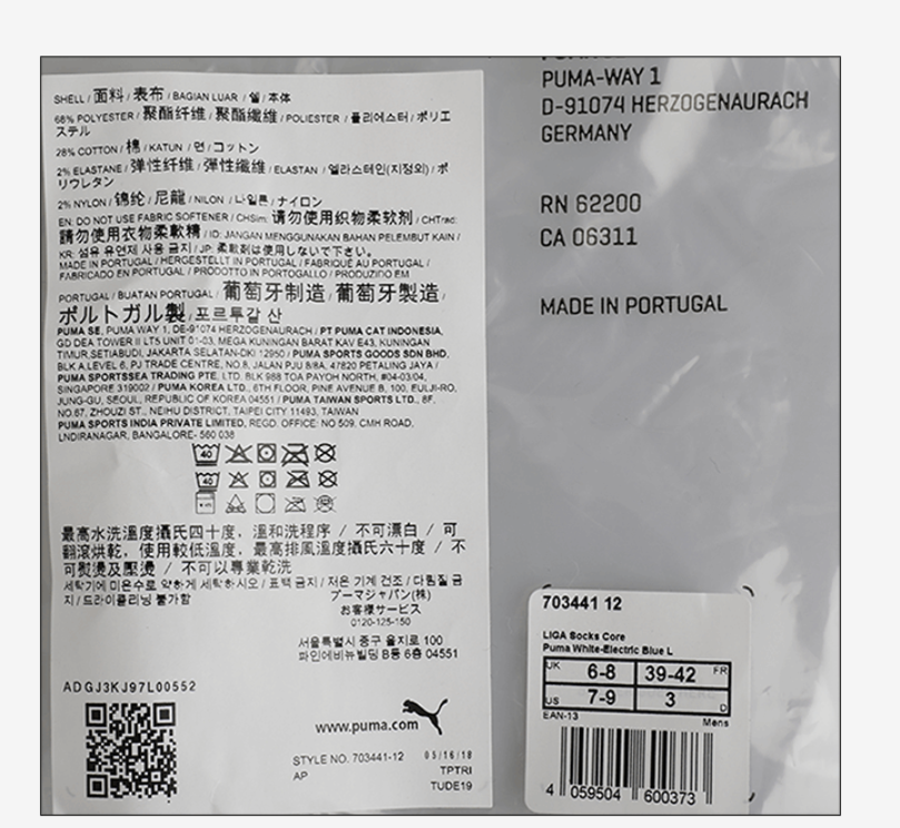 Main Features ---Brand : Puma ---Gender : Men ---Material : Polyester, Elastane, Nylon ---M #8203; #8203; #8203; #8203; #8203; #8203; #8203;PN : 70344112 ---Color : White / Blue ---Size : 26