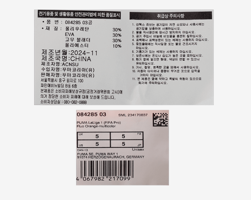 Main Features ---Brand : Puma ---Material : Polyurethane 30%, Rubber 30%, EVA 30%, Polyester 10% ---MPN : 08428503 ---Color : Orange - Multi Colour ---Size : 5 ---The balls will be shipped with no air, it is needed to pump up after receiving.