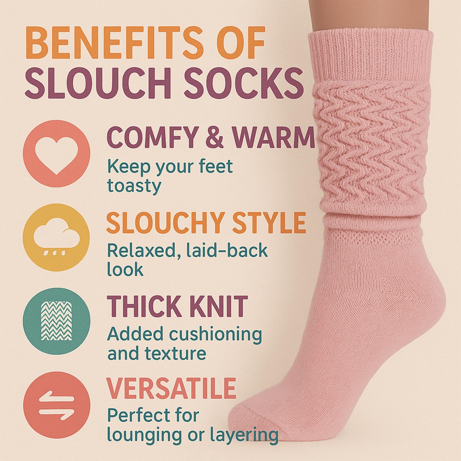 Step into a world of nostalgic comfort with ourSlouch Socks for Women Pack. AWS/American Made Slouch Socks Crafted with a blend of Cotton premium material, these socks offer a cozy and stylish addition to your wardrobe. Inspired by the iconic fashion of the '80s and '90s, these AWS/American Made slouch socks feature a classic ribbed design that adds texture and charm to any outfit. Whether you're lounging at home or hitting the streets, these Slouch Socks are the perfect accessory to elevate your look with a touch of retro flair. Designed for all-day wear, our slouch socks provide a comfortable fit that stays in place without feeling restrictive. The soft and breathable fabric ensures your feet stay cozy and dry, while the slouchy silhouette adds a relaxed vibe to your ensemble. Available in a variety of colors to suit your style, these socks are a must-have for any fashion-forward woman. Treat yourself to the timeless appeal of our Retro Ribbed Slouch Socks and step out in confidence wherever you go. Slouch Socks for Women; Retro-inspired design, Premium blend for comfort and durability, soft texture for added style.