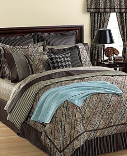 chocolate brown shams with cream/beige pinstriping