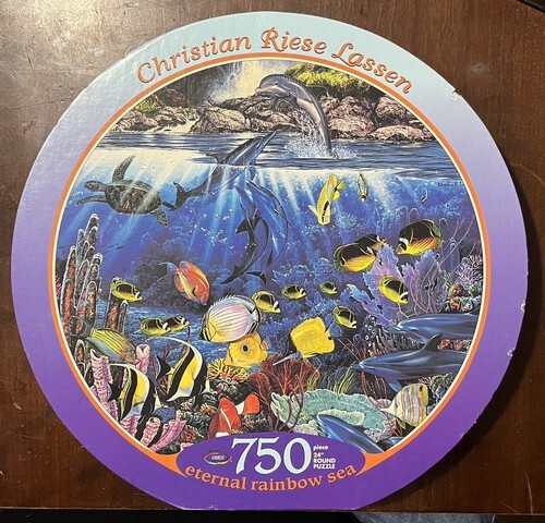 Christian Riese Lassen Eternal Rainbow Sea 24" Round Jigsaw Puzzle 750 Pcs NICE