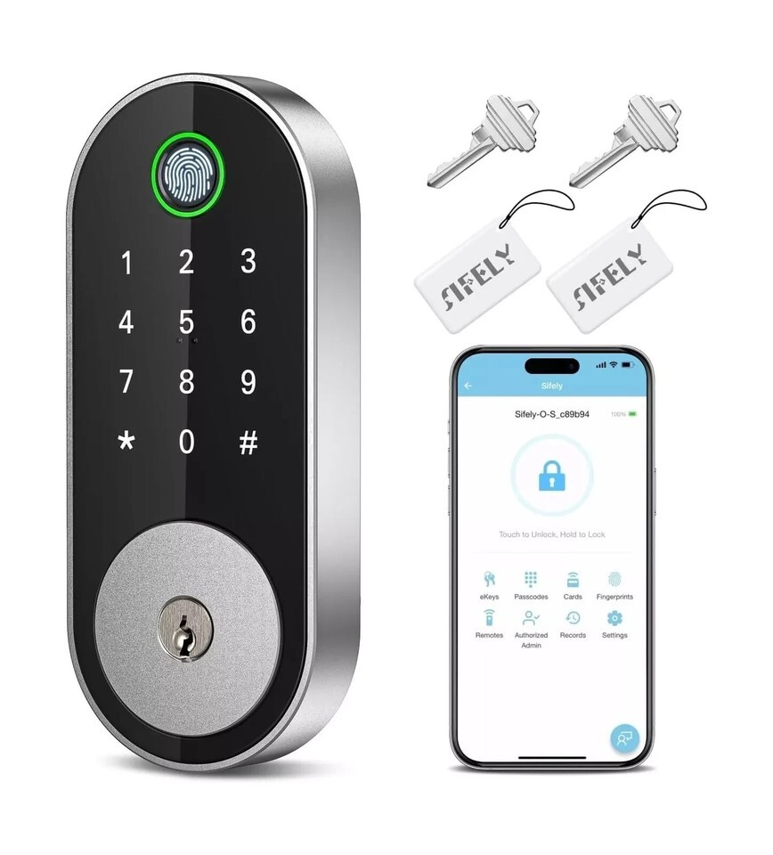 Sifely Smart Lock Keyless-Entry Fingerprint Deadbolt Code (Silver) New